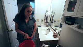 Beverley Morris flushes her toilet using a bucket because of low water pressure